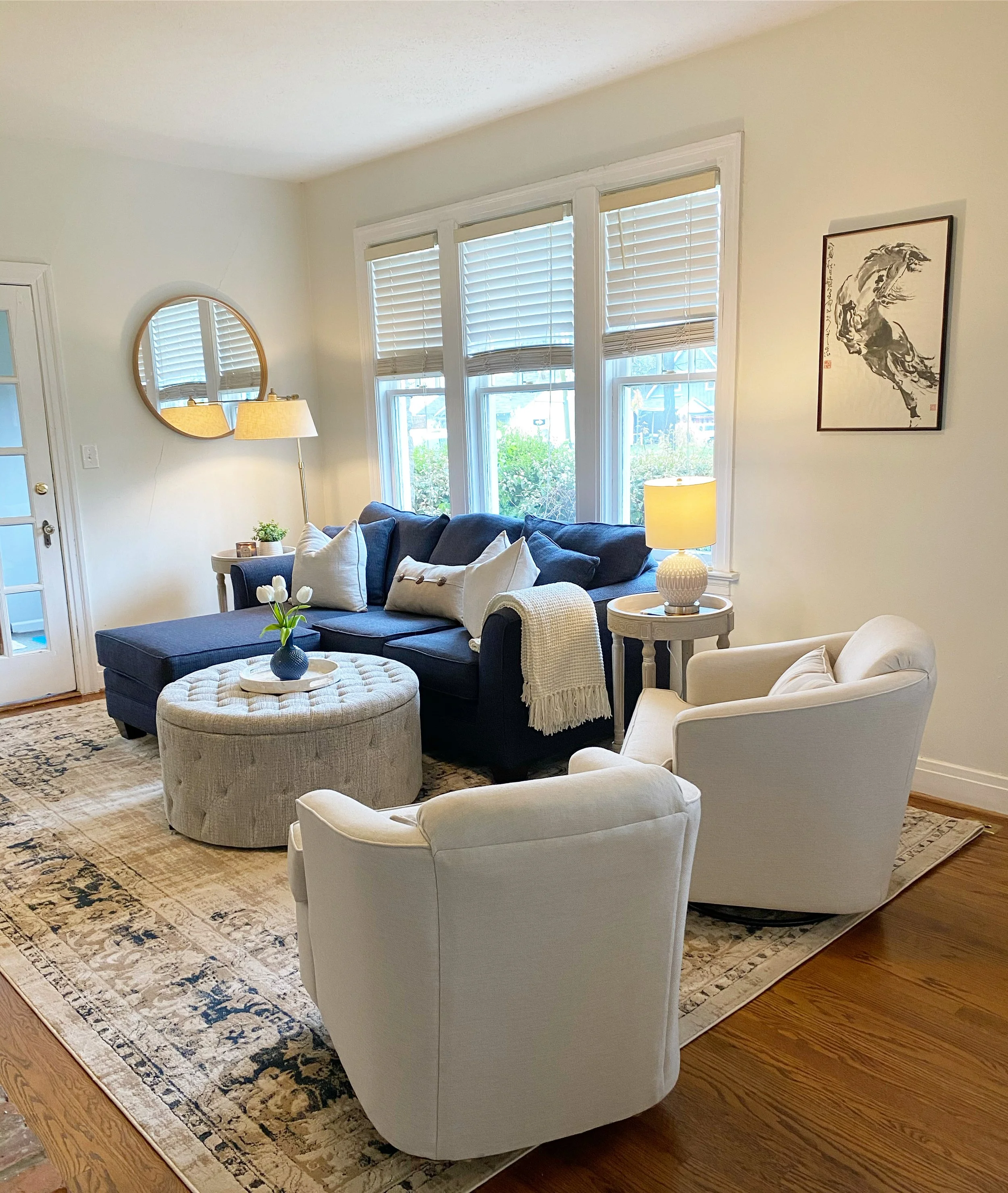 “Thanks to Francis + James, our family now has a clean, cozy, and beautiful living space. I don't normally enjoy design in any form, but Kaitlyn's support, listening ear, and recommendations made the time spent on this project exciting and pleasant. Kaitlyn was communicative and there was never any question about where we stood on design items or the process. The living room installation was a great final touch in a seamless process. The final product made me tear up! After a long, tough year of being home almost constantly, a refresh of our living space was exactly what our family needed. We will definitely be using Francis + James again in the future!”